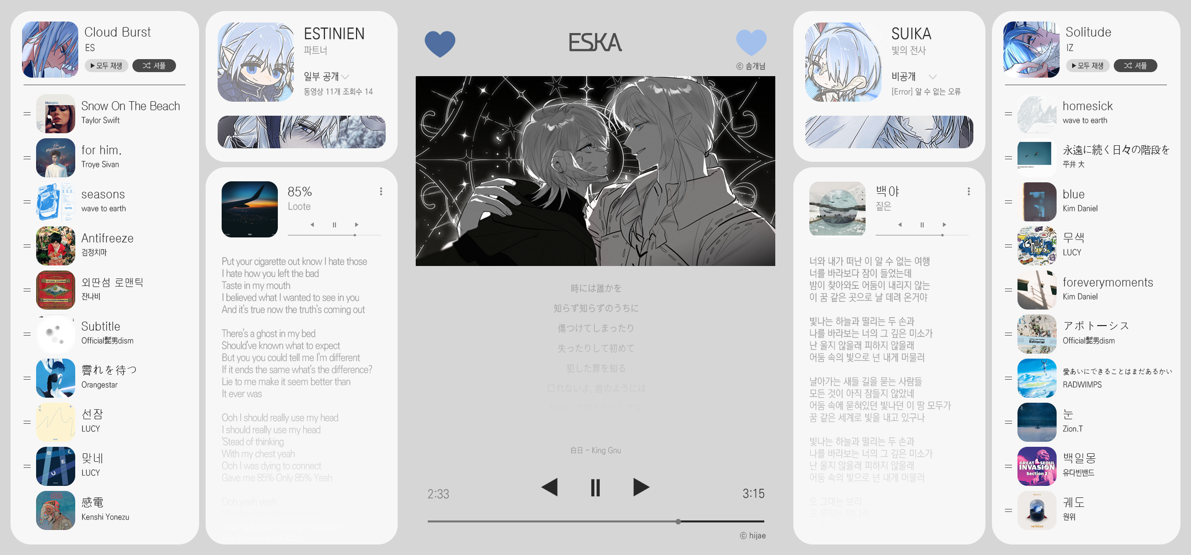 백업으로 올립니다. 하나 하나 선정 이유랑 곡의 가사도 꼼꼼하게 써주었어요. ^.^