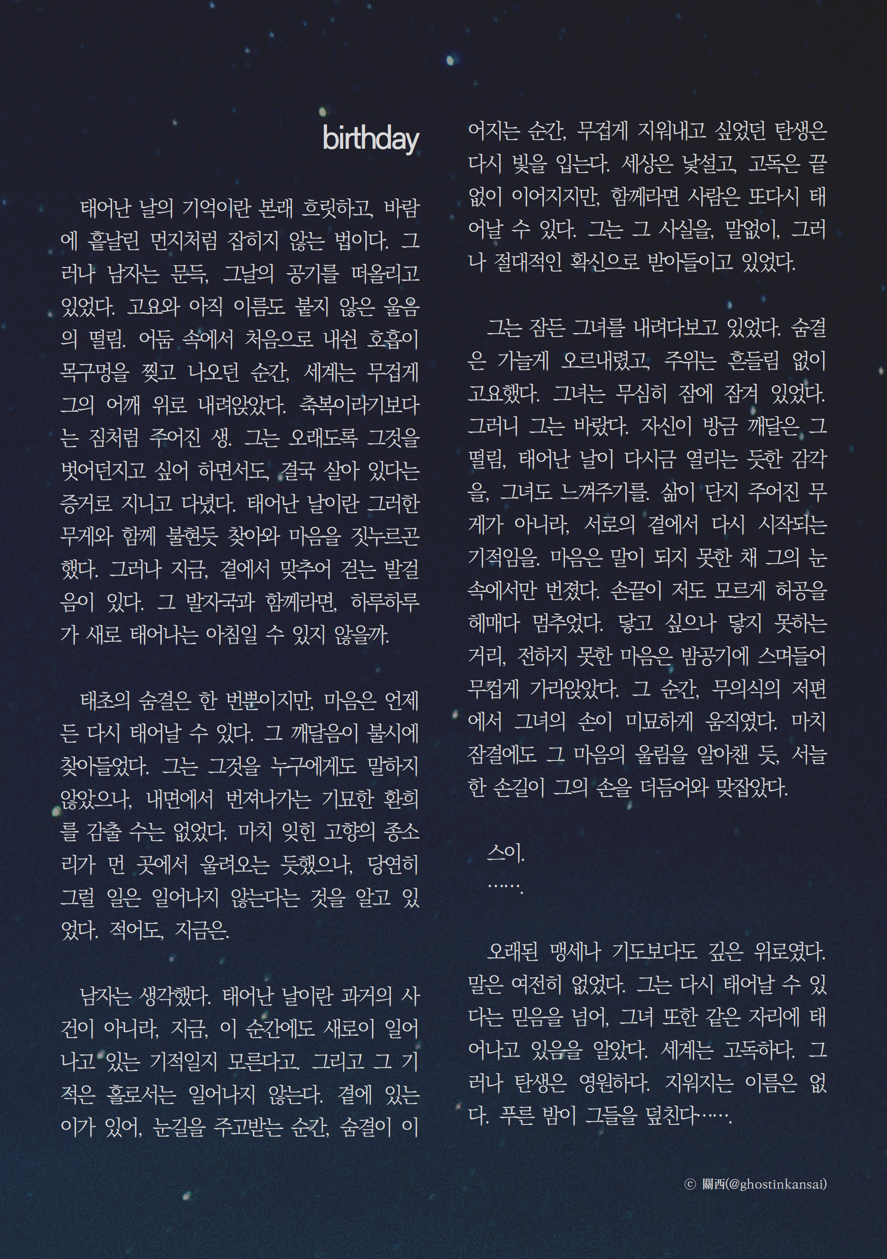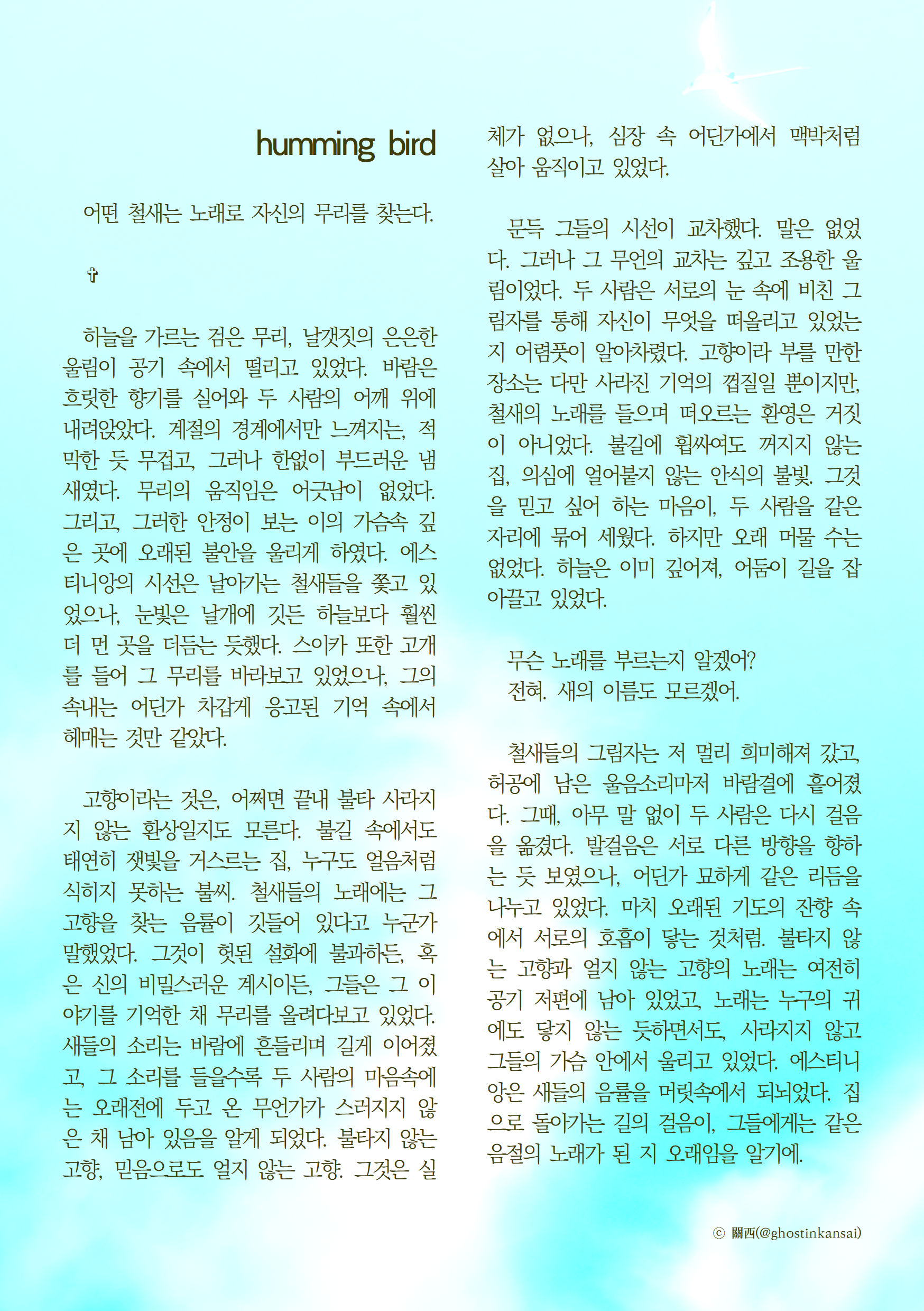 ⓒ 관서님 순후추 text • 2025. 10. 15. A A default 글 관서 ⓒ ghostinkansai 공유하기 게시글 관리 Migratory Birds 'text' 카테고리의 다른 글 얼음 에테르 오르골 (0) 2025.11.12 💌 (0) 2025.11.11 ⓒ 관서님 911² (0) 2025.09.01 ⓒ 관서님 동화책 타입 (0) 2025.08.26 ⓒ 관서님 영양성분표 (0) 2025.08.26